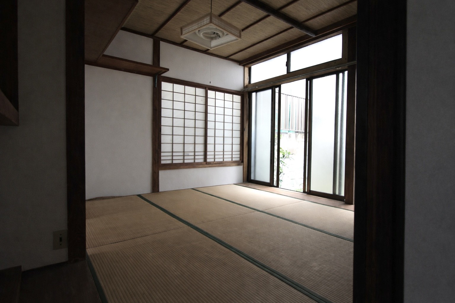外からの視線が程よく遮られた庭は、街中にありながらも落ち着いた雰囲気があり、作業や思索に没頭できそうな場所です。庭に面した土間のような部屋は、工具や材料を気兼ねなく持ち込めるため、ものづくりや修理、実験的な作業スペースとしても活躍しそうです。また、押入れの跡が残る空間は、少し手を加えるだけで音楽鑑賞スペースやDJブースのような場所にもなり得ます。